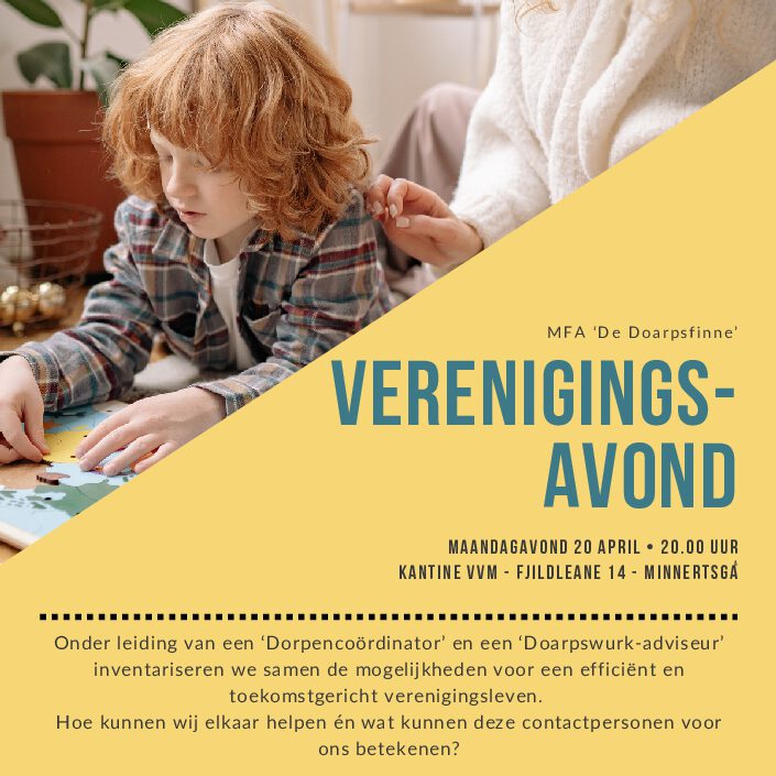 Tijdens deze avond vertelt de ‘Dorpencoördinator’ meer over zijn/haar rol en wat deze kan betekenen voor het verenigingsleven in ons dorp. Samen met een ‘Doarpswurk-adviseur’ nemen zij ons mee in verschillende scenario’s en denken ze met ons mee over bijvoorbeeld: